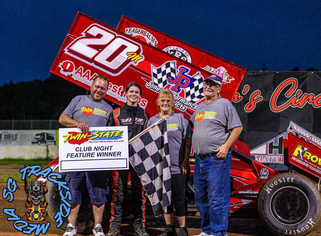Last years IMCA racesaver 305 sprint champion Vivian Jones picked up her 2nd win in a row and with her 6th career win moved her into 10th all time out of 46 drivers who have won in this division since 2011. Mike Mathieson would have his best finish in some time finishing 2nd, Aaron Marano a career best 3rd, Joe Coggin and Jazlyn Boyles would round out the top 5. Jones would say, “any car here can win any week and I am so fortunate I’m here. It’s always a challenge trying different things we ran good at Lernerville last week and it’s a great class!”