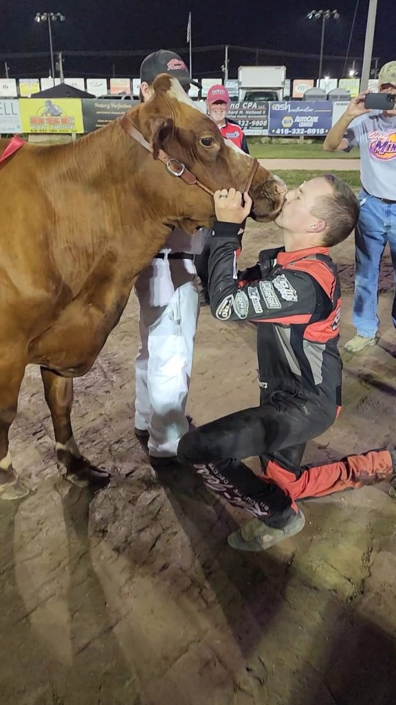 FREMONT, Ohio – Craig Mintz started racing sprint cars 25 years ago in the 305 sprint division. He’s not sure he ever got a win in that class but he is sure not. Mintz, from Gibsonburg, Ohio, drove to the win Monday, Aug. 18 on Fremont Fence Kiss the Cow Night in the 305 sprint feature at Fremont Speedway Presented by Gill Construction. The race opened the 173rd Sandusky County Fair.